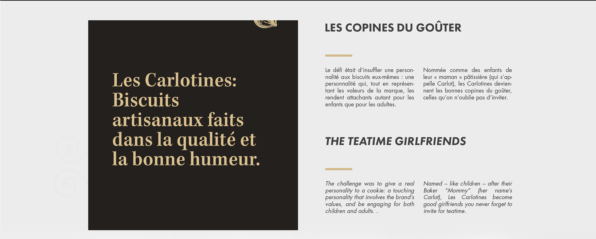 Les Carlotines is a young swiss brand making high quality handmade cookies. The brand supports local producers, their traditional values and good spirit. It was really a brand new brand when we first met so its whole identity was yet to create.